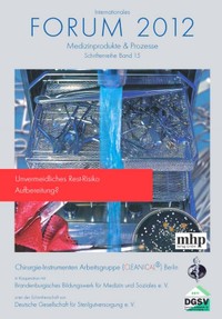 Inhalt:- B. Amann, Th. W. Fengler, T. von dem Hagen : Flexible Endoskopie und Risiko-Bewertung- J. Whelan : Zentralisierung der Aufbereitung flexibler Endoskope – Möglichkeiten der Risikenverminderung- R. Basile : Augen auf – Visuelle Inspektion innerer Oberflächen neu beleuchtet- B. Amann : Einfache Bestimmung des Spülergebnisses innerer Oberflächen von Medizinprodukten- W. Michels, H. Mäffert : Effziente Reinigung von Instrumenten der Elektrochirurgie- W. Michels : Qualitätskontrolle maschineller Reinigungs-Desinfektionsprozesse im laufenden Betrieb