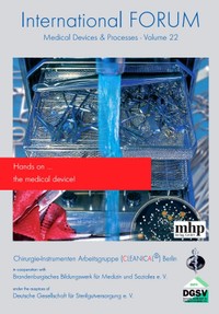 Inhalt:- T.W. Fengler : Editorial: «Gutartige» Medizinprodukte und abgesicherte Aufbereitungsprozesse?- R. Basile : Neue ASTM-Testmethoden zur Leistungsbeurteilung von Reinigungsbürsten für Medizinprodukte- B. Amann : Narrativ-Report aus der klinischen Praxis: «Warum Bronchoskope sterilisiert werden sollten» – ein Diskussionsbeitrag- M. Pilasi : Kernpunkte der Prozessvalidierung: Bedeutung der Beladung, der Verfahrensvorschriften und der Herstellervorschriften- W. Michels : Vergleichende Bewertung der Wirkung von Prozessparametern sowie enzymatischen Reinigern bei der maschinellen Aufbereitung- T.W. Fengler : Explantierte Implantate Rerum cognoscere causas: Der Dinge Ursachen erkennen?... und weitere Beiträge (P) 2019